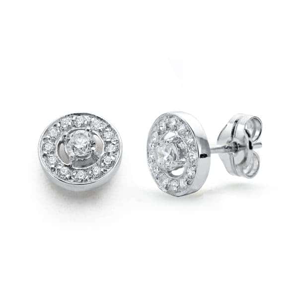 18K PENDIENTES ORO BLANCO CIRCONITA 8 MM CIERRE PRESION