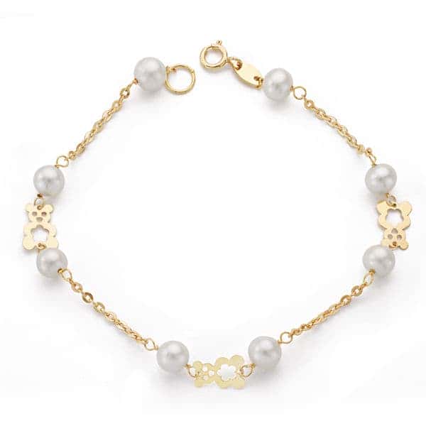 18K PULSERA ORO AMARILLO COMUNION PERLA 5.5 MM 17CM