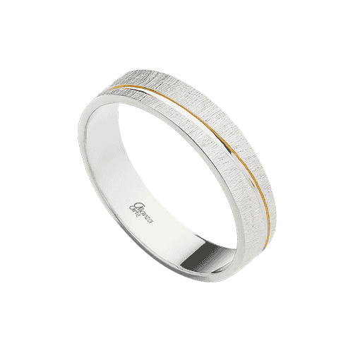 Diseñada para destacar, esta alianza de plata con perfil plano y textura rayado fuerte refleja carácter y sofisticación. Su ancho de 4.5 mm proporciona una presencia sólida y elegante, ideal para quienes buscan una joya con identidad propia.