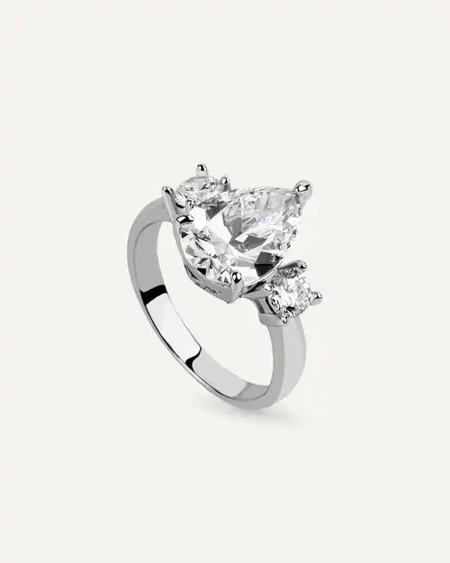 Anillo en plata de ley 925mls con doble baño de platino y rodio y circonitas EXCELLENCE STAR CUT talladas con los estándares ideales del corte brillante. Ofreciendo el máximo brillo habiendo utilizado el corte ideal de Tolkowsky, reconocido como el corte brillante más perfecto del mundo.