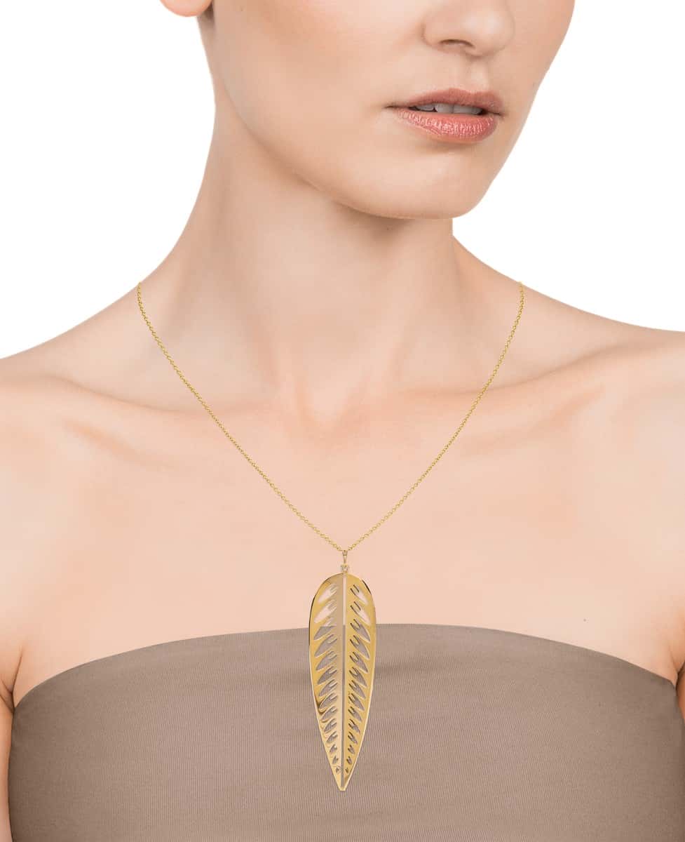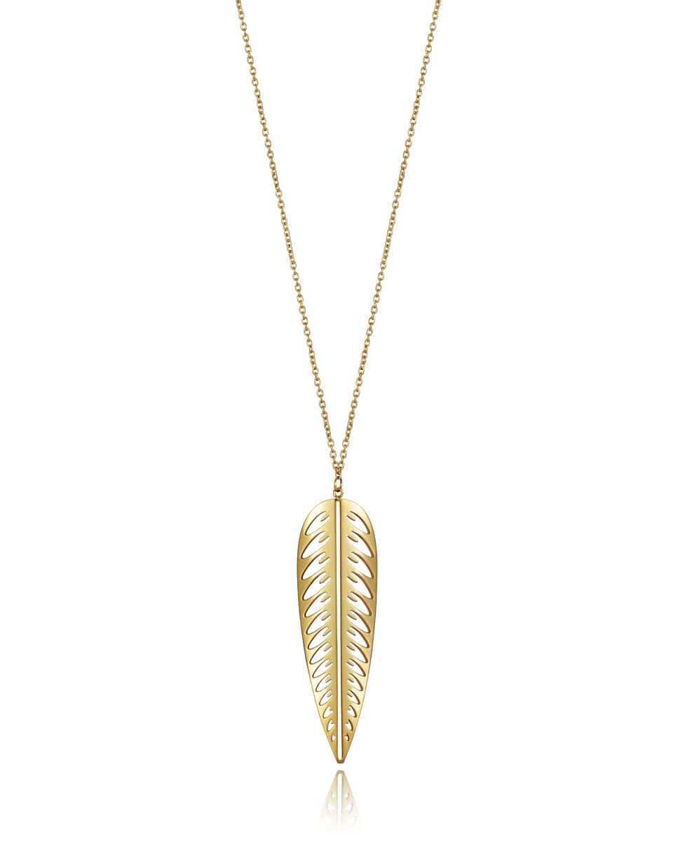Collar largo Viceroy Air de acero Ip Gold con colgante en forma de pluma con calado. Largo 70cm y 5cm de extensión