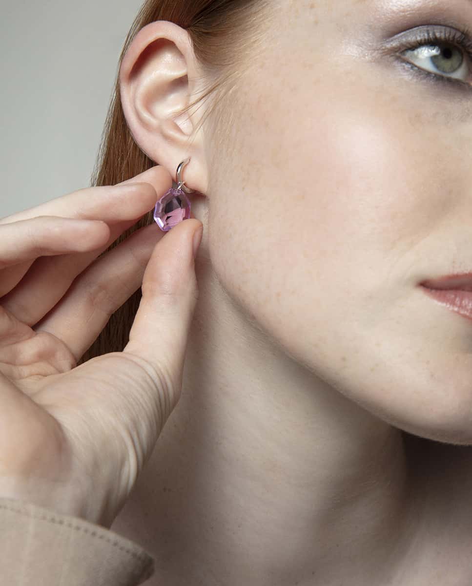 Pendiente de plata de primera ley con baño de oro destaca por su diseño sofisticado y moderno. El delicado aro está acompañado por un colgante de cristal morado, que añade un toque vibrante y elegante. Perfecto para la mujer que busca un accesorio que combine la calidez del oro con la belleza del cristal morado, este pendiente aporta un estilo contemporáneo lleno de glamour y distinción. Largo 28 cm.