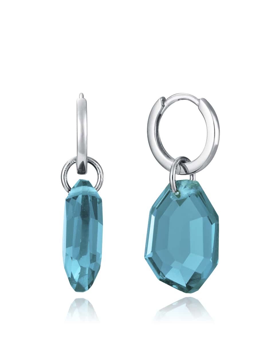 Pendiente de plata de primera ley con baño de rodio y aro con colgante de cristal azul REF. 13229E000-53
