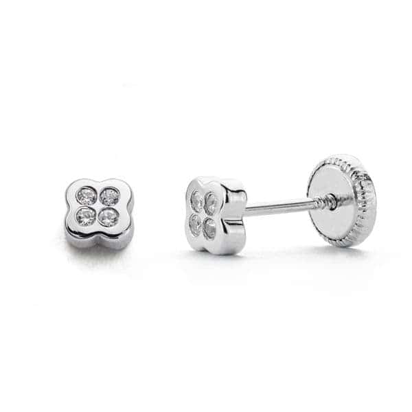 PENDIENTES CIRCONITA ORO KTS. BLANCO 4 MM CIERRE TUERCA