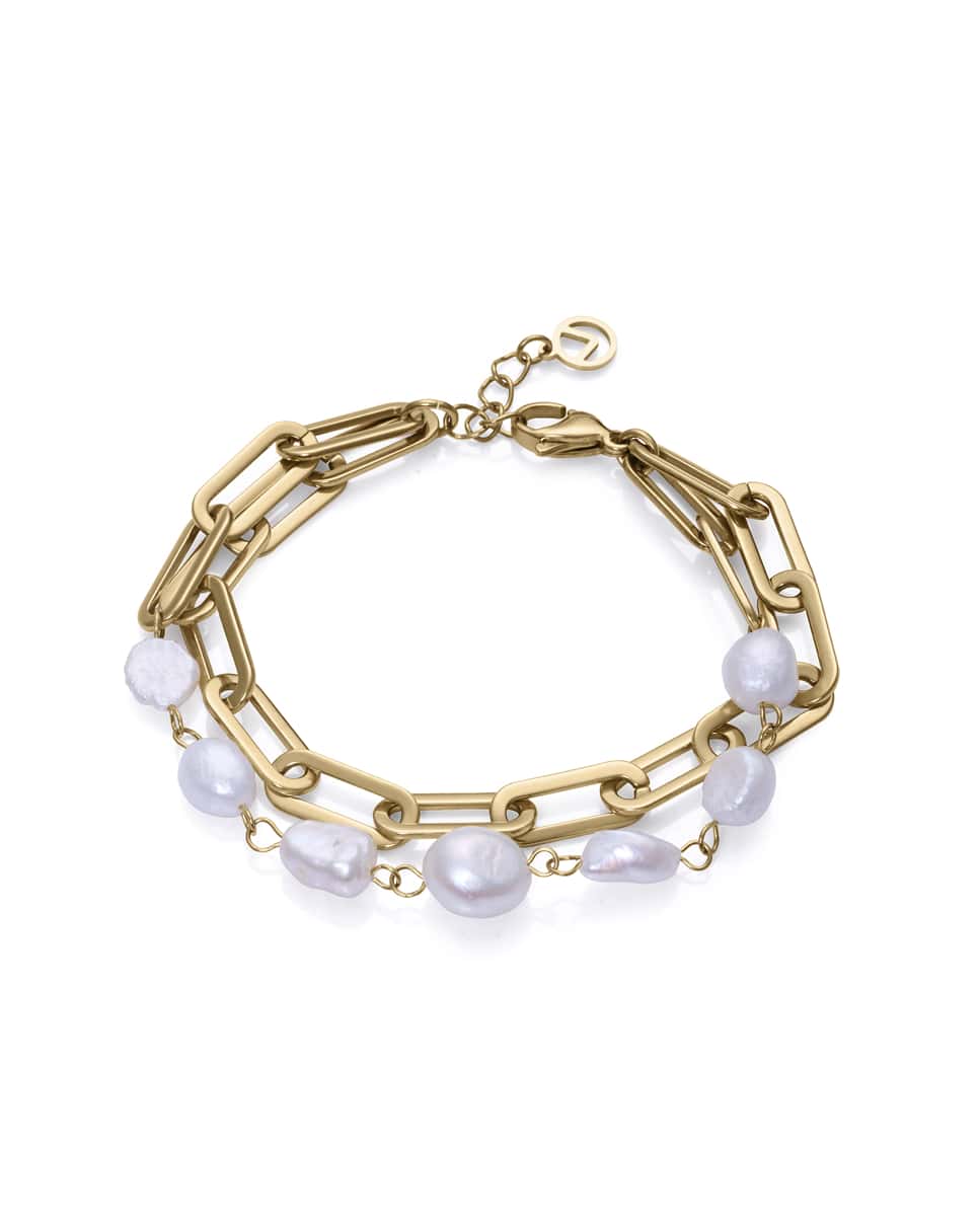 Pulsera Chic de acero en Ip dorado y perla cultivada