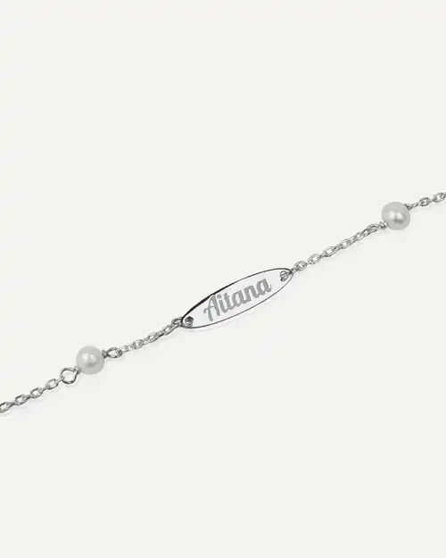 Un diseño moderno y cómodo, ideal para niños. La placa se graba con el nombre que tú elijas, creando una joya práctica y significativa.