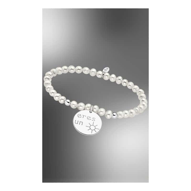 PULSERA LOTUS PLATA MUJER, PERLAS NATURALES BLANCAS «ERES UN SOL» LP1669-2/2