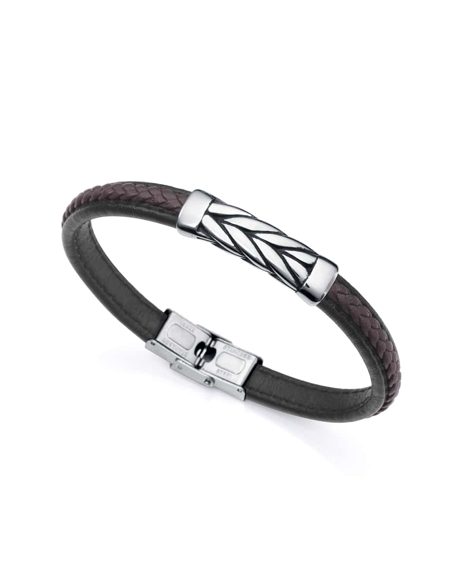 Pulsera Magnum de acero con piel negra y marrón trenzada