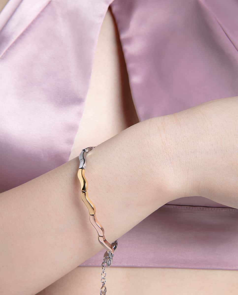 PULSERA DE ACERO EN TRES TONOS, ONDAS EN ACERO, IP DORADO Y ROSA, DE HOMBRE