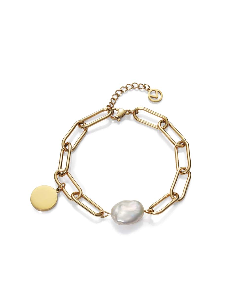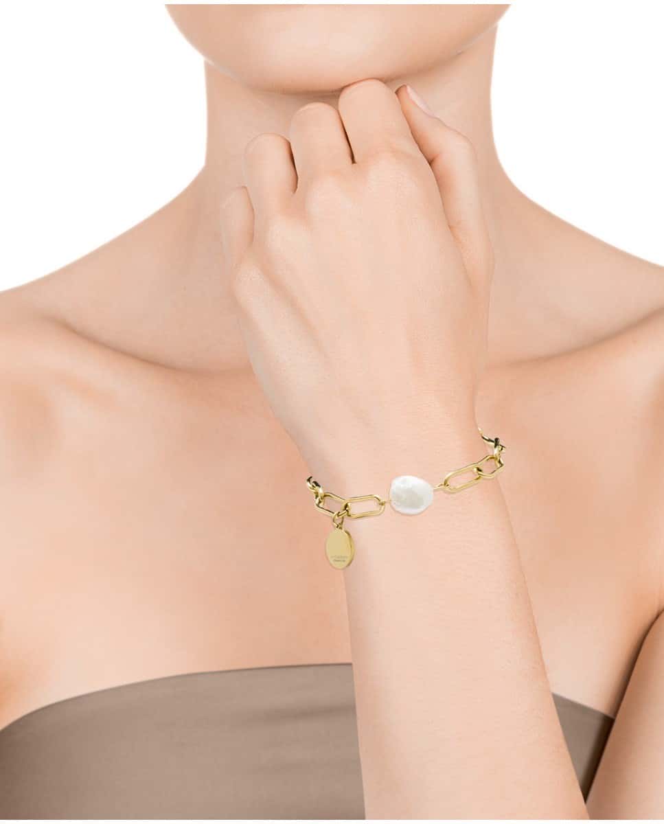 Pulsera Viceroy chic de acero dorado de eslabones largos y perlas. Largo / Diametro: 17,5 + 2cm.