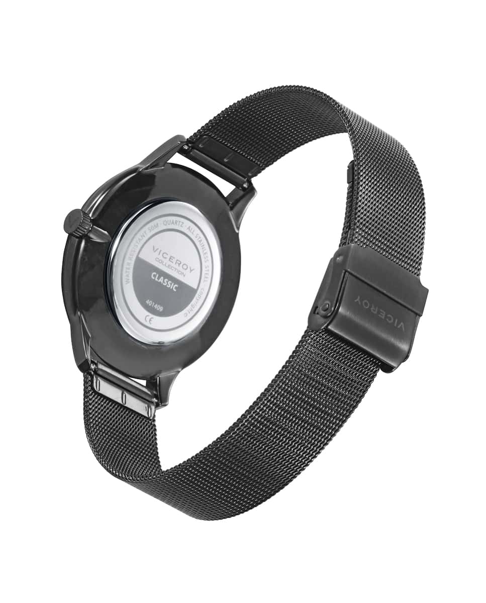 Reloj de acero IP gris con malla milanesa y movimiento de cuarzo