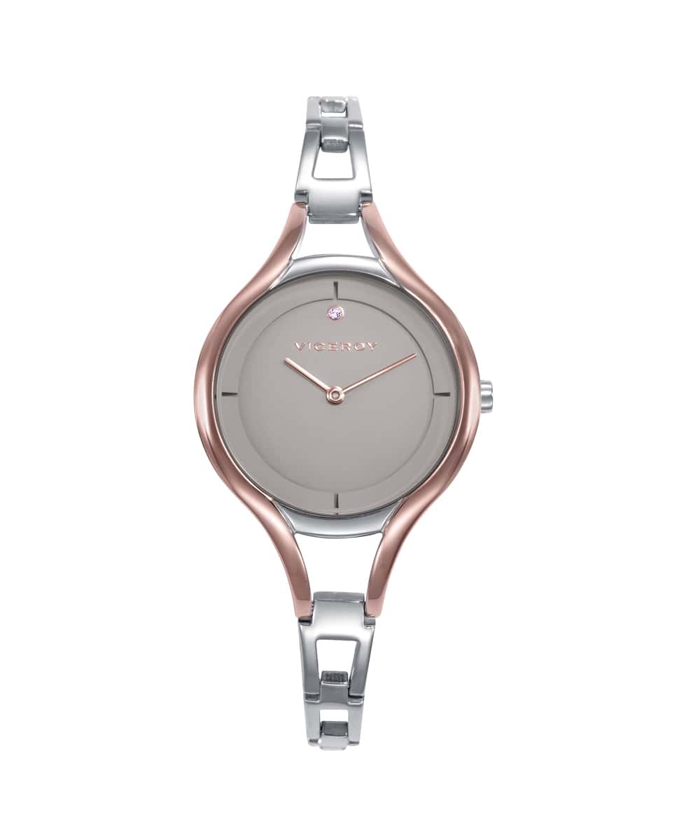 Elegante reloj de mujer de dos agujas que combina un diseño moderno con un toque sofisticado. La caja de acero con acabado IP rosa añade un aire de lujo sutil. El brazalete de acero complementa a la perfección la esfera gris, que presenta unas delicadas agujas horarias en color rosa, creando un contraste atractivo. El cristal mineral asegura su durabilidad, haciendo de este reloj el accesorio perfecto para quienes buscan una combinación de estilo y funcionalidad.