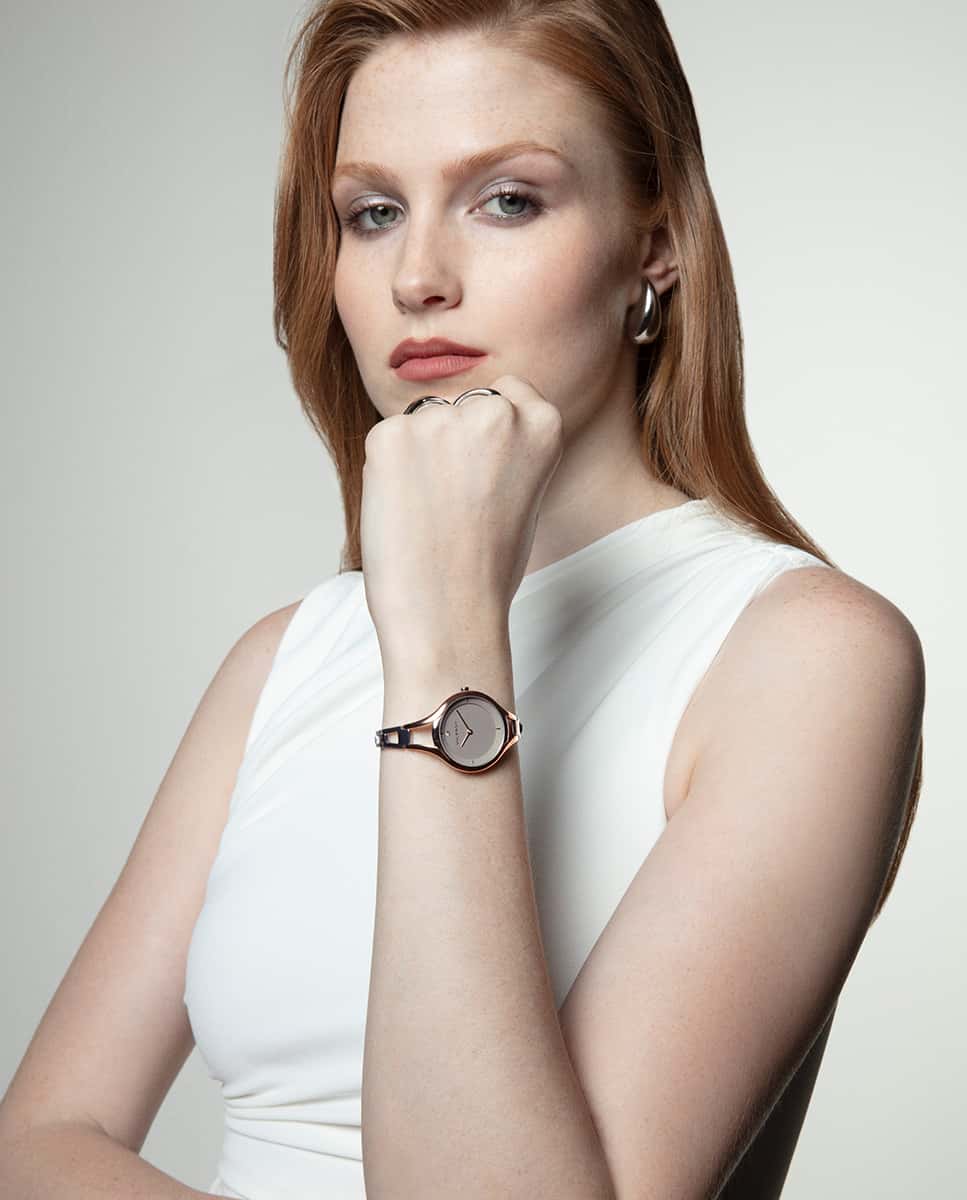 Reloj caja de acero Ip rosa 5 atm y brazalete de acero con movimiento cuarzo