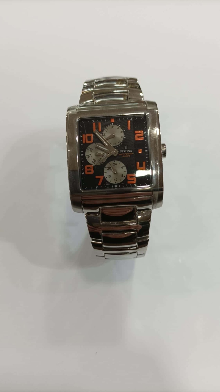 Este modelo de Festina combina un diseño clásico con funcionalidad práctica diaria: su caja cuadrada de medidas moderadas lo hace cómodo para el uso diario, y su brazalete de acero le da un aire elegante pero versátil. La esfera negra con calendario multifunción añade un toque de utilidad extra, ideal si buscas un reloj fiable y fácil de leer con funciones básicas de calendario y hora.