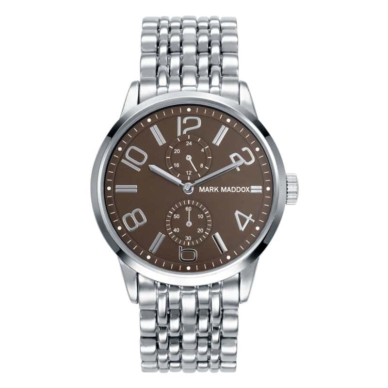 Reloj Mark Maddox hombre caja y pulsera plateado, 2 esferas.