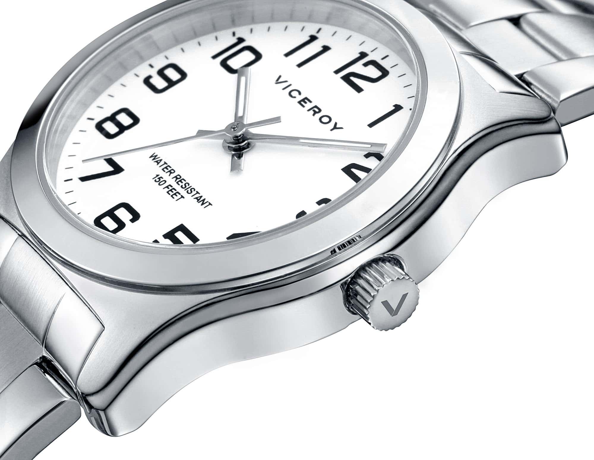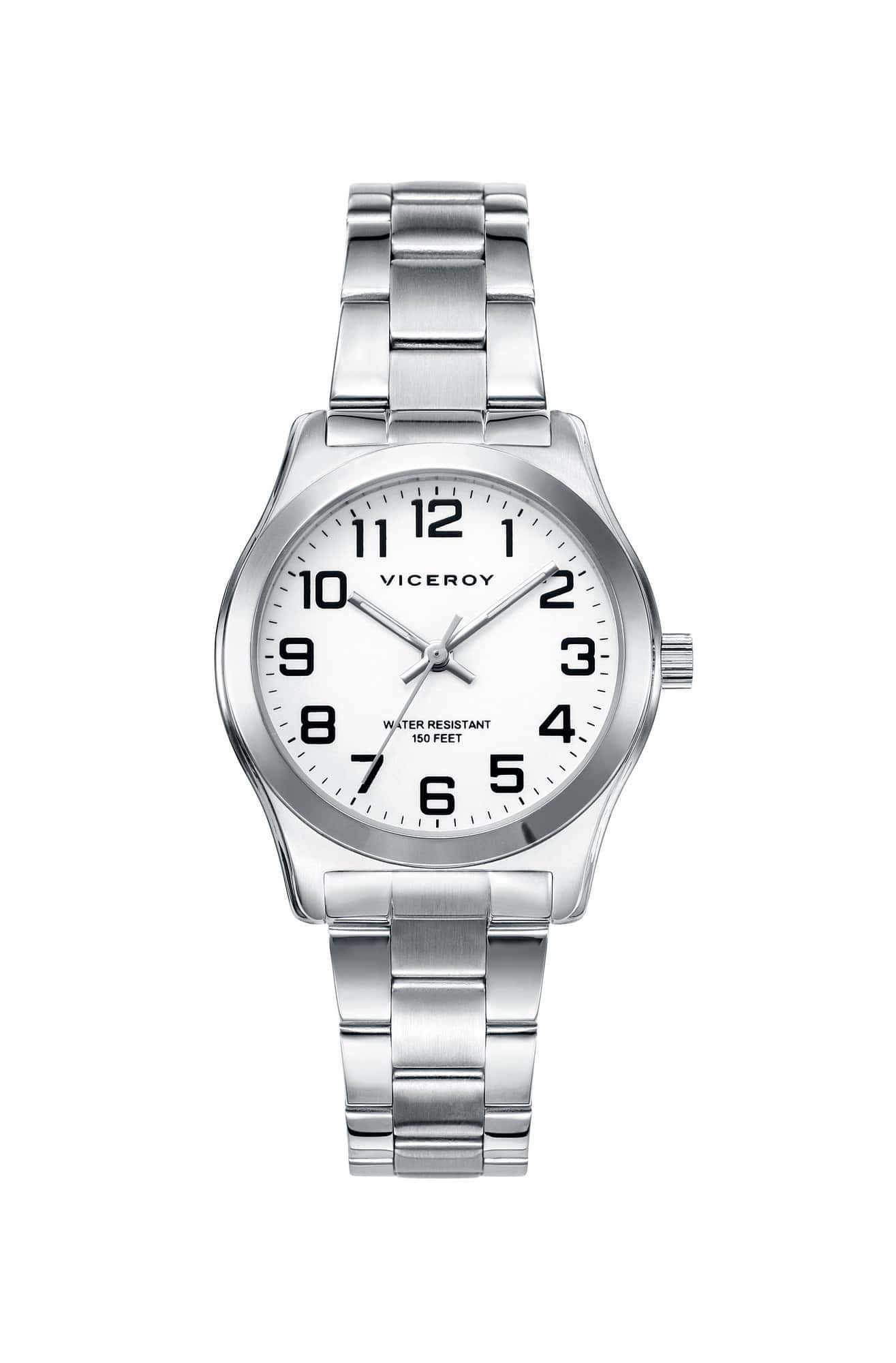 Reloj Viceroy 40854-04 analógico para niño con movimiento de cuarzo, correa de acero inoxidable y resistencia al agua de 100 metros. Material de Caja: Acero Color principal esfera: Blanco Diámetro: 32 mm. Tipo de Pulsera: Brazalete Material de la Pulsera: Acero cut edge Tipo de Cierre: Desplegable Movimiento / Función: Cuarzo analógico Función: 3agujas Impermeable PRESENTADO EN ESTUCHE VICEROY Y GARANTIA OFICIAL DE LA CASA 2 AÑOS.