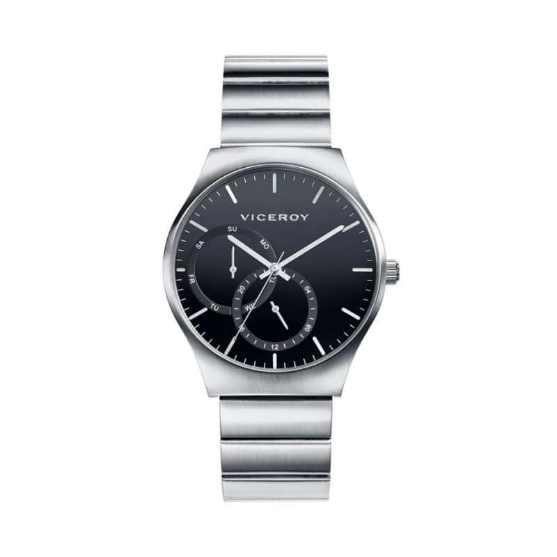 Reloj Viceroy Hombre caja y pulsera de acero, 30 m. esfera negra.